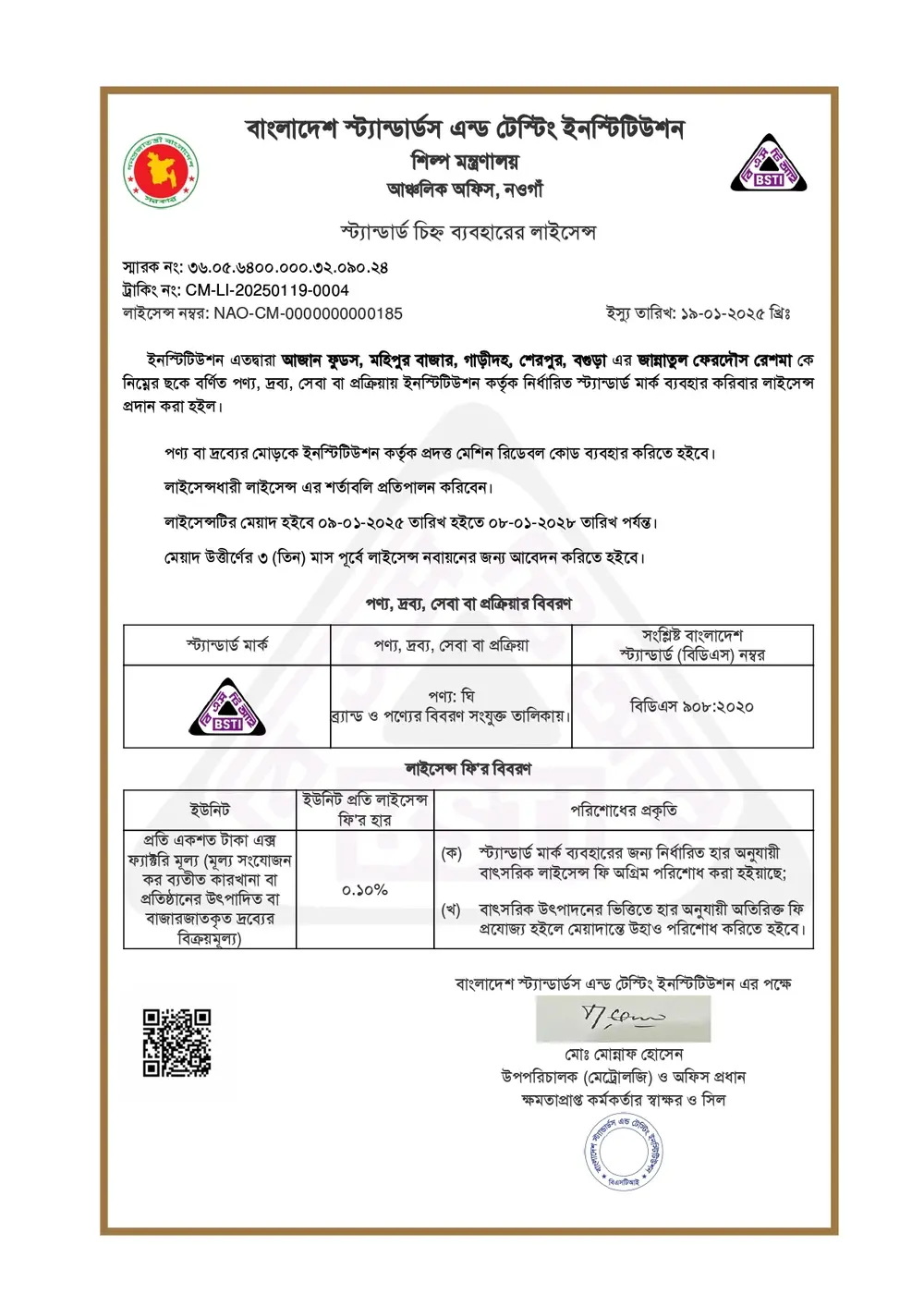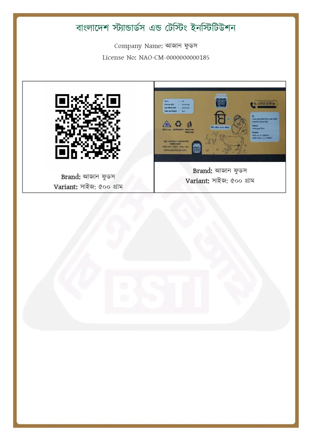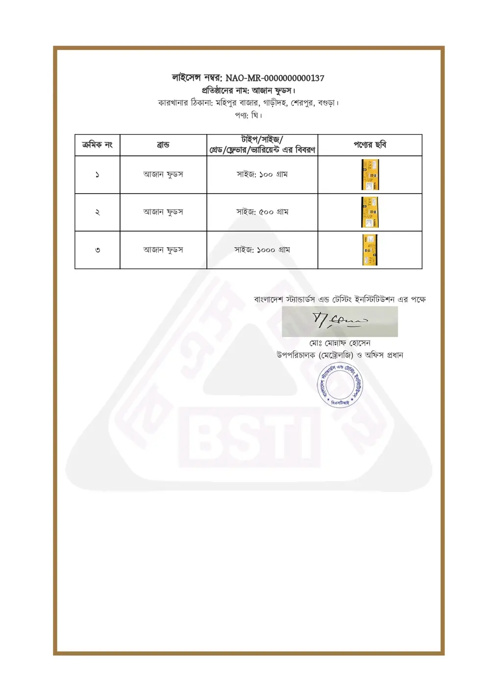 ঘী এর BSTI লাইসেন্স